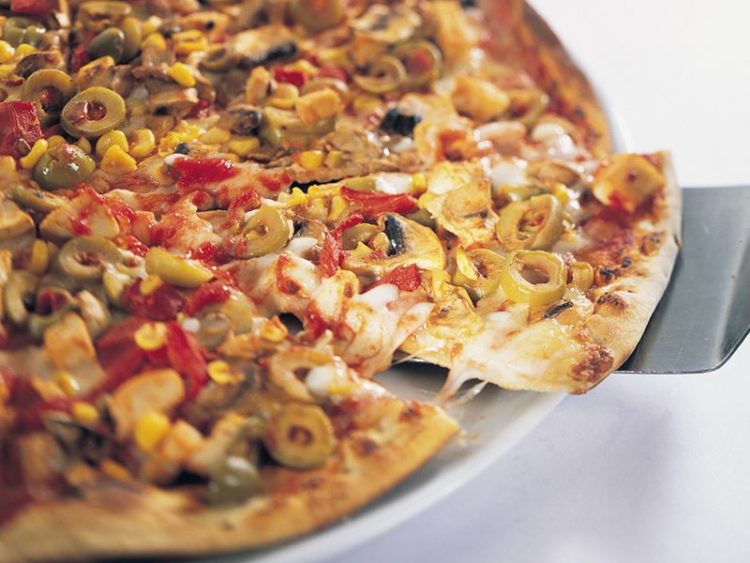 - Tavuk, mantar, zeytin ve mısırı paylaştırın..