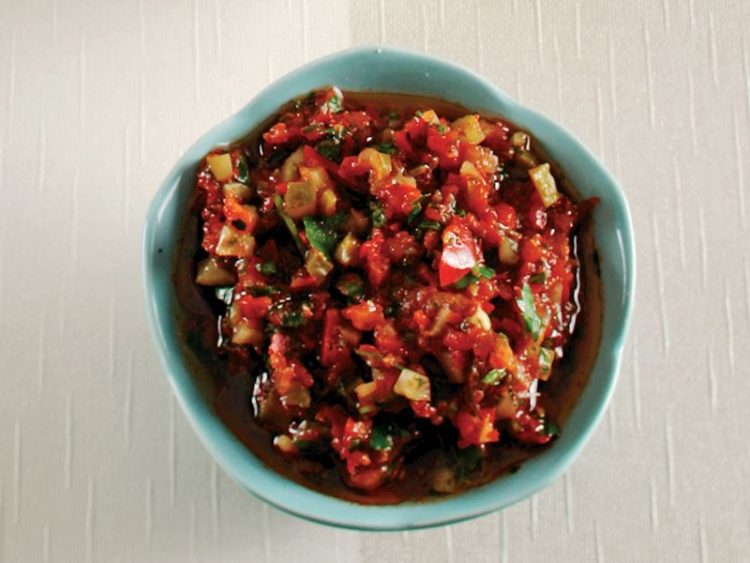 - Maydanoz, domates ve biberleri mutfak robotunda karıştırın..
