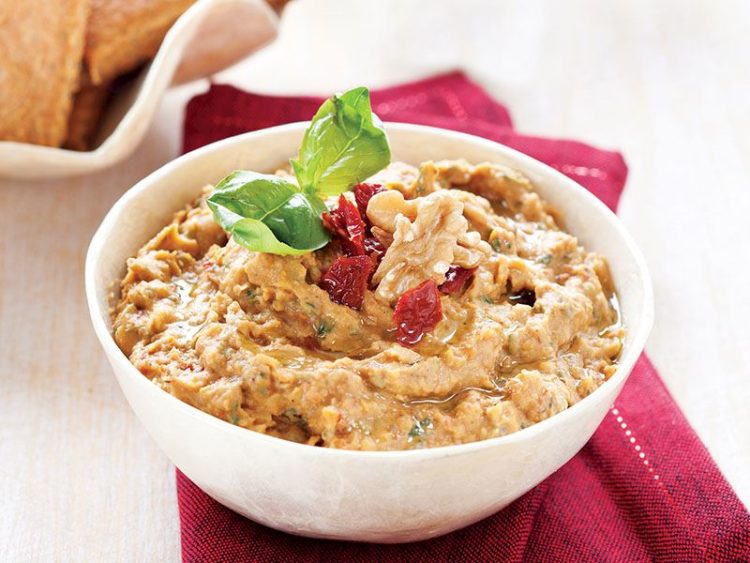 - Küp doğranmış kuru domates ve fesleğen ile süsleyin..