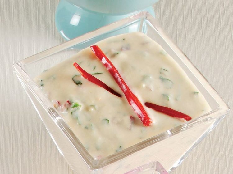 - Krema, muskat, tuz, karabiber, ince doğranmış kırmızıbiber, yeşil soğan ve maydanozu ekleyip karıştırarak servis yapın..