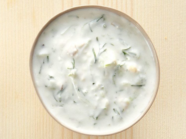 - 50 gr beyaz peyniri rendeleyip cevizle birlikte yoğurtlu karışıma ilave edin..