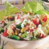 - Marul, lahana ve soğanı harmanlayıp salata tabağına alın..