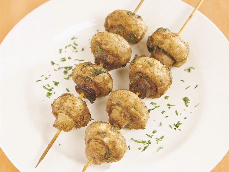 - Mantar şişleri tel ızgaraya dizip ara sıra çevirerek kızartın..