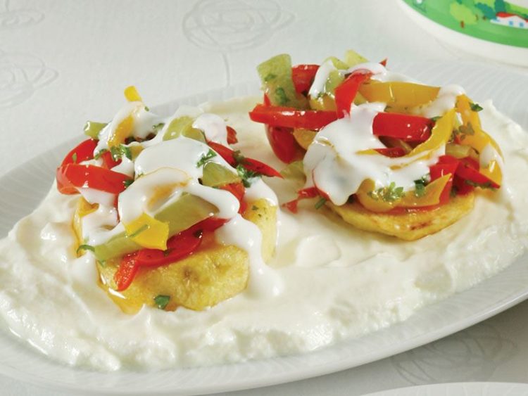- Kaymaksız yoğurtu servis tabağına yayın..