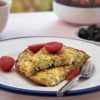 - Omleti servis tabağına alıp zeytin ve domateslerle süsleyin..