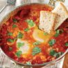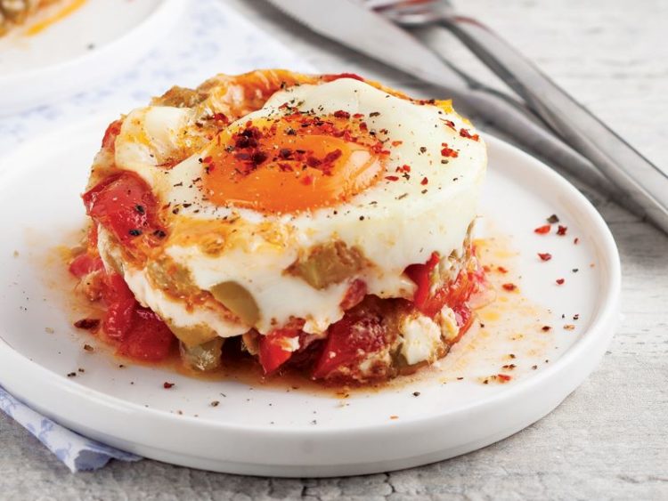 - Üzerlerine birer yumurta kırıp önceden ısıtılmış 200 derece fırında yumurtalar pişene kadar 8-10 dakika pişirip fırından alın..