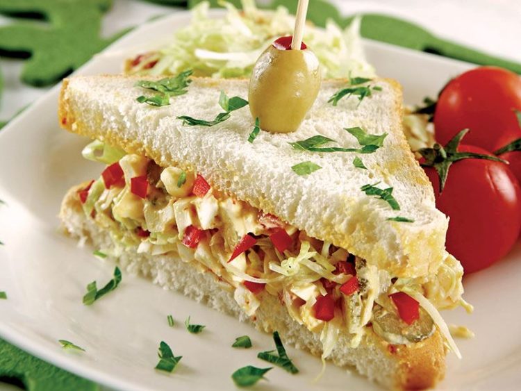 - Ekmeklerin arasına yumurtalı karışımı ve ince doğranmış yeşillikleri yerleştirerek servis yapın..