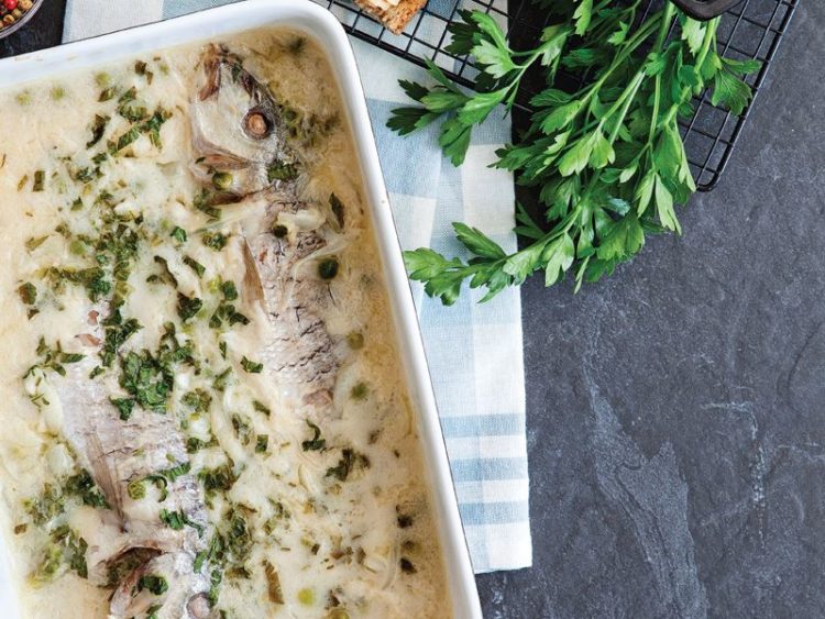 - Temizlenmiş balıkları bütün olarak yağlanmış fırın kabına yerleştirip kremalı harcı balıkların üzerine gezdirin..