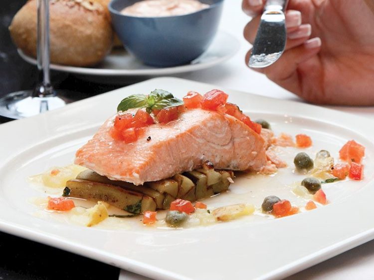 - Somon balığı, tuz ve biberle lezzetlendirip patlıcanları ekleyin..