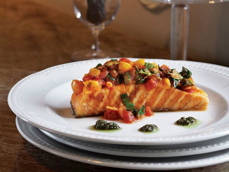9. Izgarada pişirdiğiniz somonları servis tabağına alın..