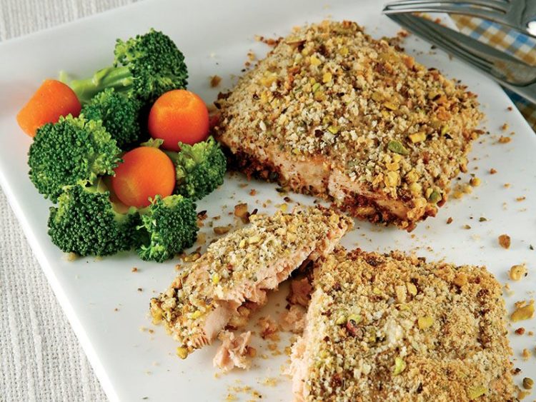 Fırında Antep Fıstıklı Açık Deniz Somonu