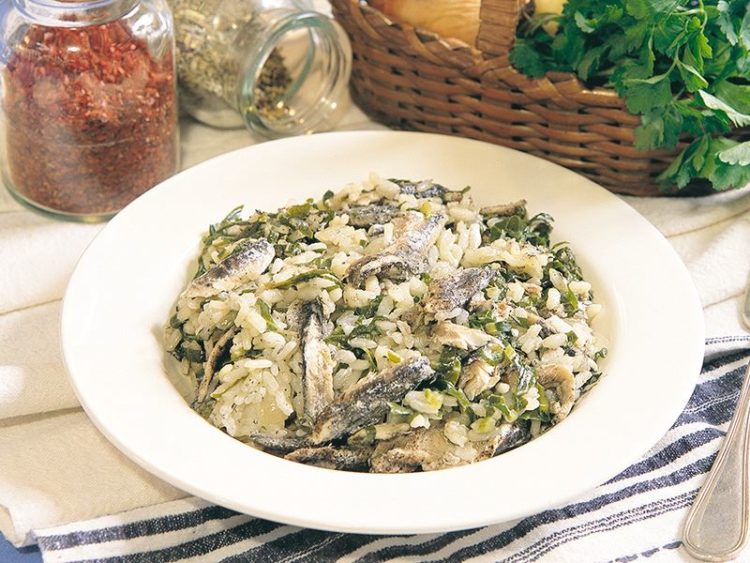 7. Pirinç, soğan ve hamsileri ekleyin..