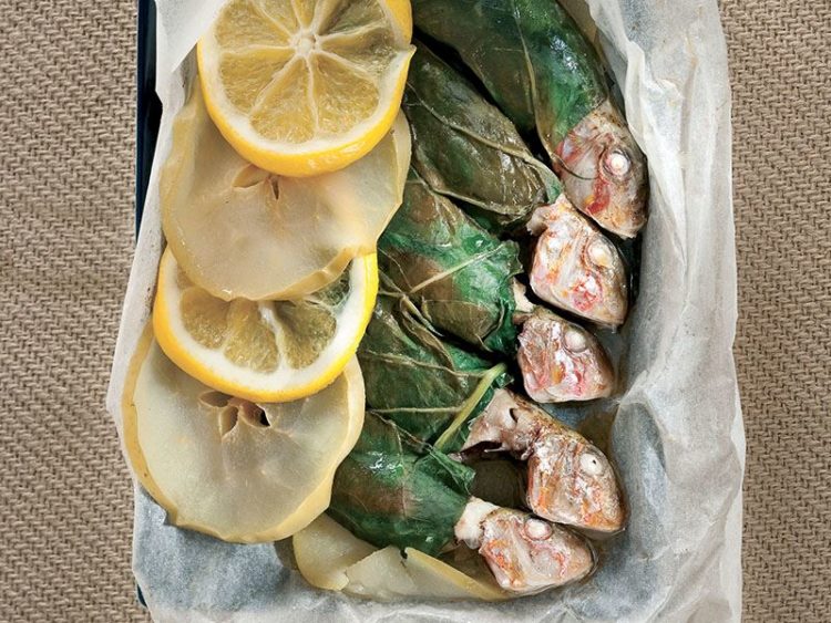 4. Üzerine pazı yaprağına sarılı balıkları alın..