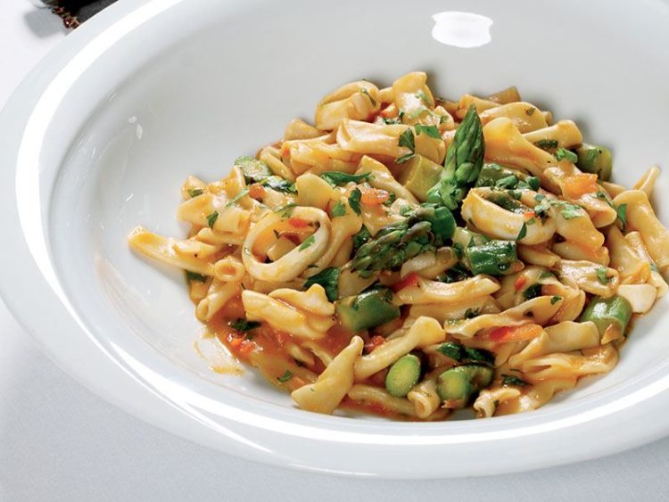 Kalamar ve kuşkonmazlı trucioli