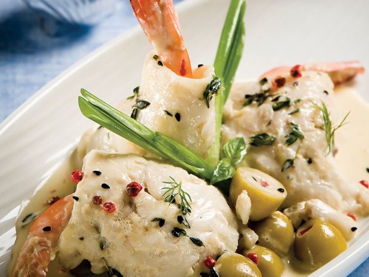 - Levreğe sarılı karidesleri ekleyip 10 dakika pişirin..