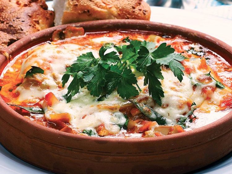 - Fırın kabına aktarın ve üzerine rendelenmiş kaşar peyniri serpip fırında 5 dakika daha pişirip servis yapın..
