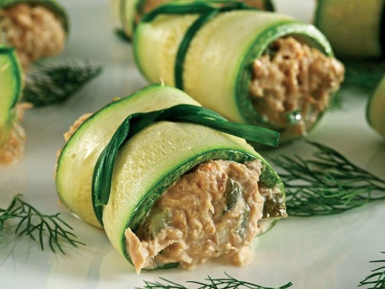 - Kabakların uç kısımlarına balıklı karışımdan yerleştirip rulo şeklinde sarın..