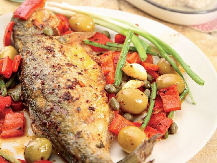 Balığı sosuyla ve zeytinlerle birlikte orta ateşte her iki tarafını çevirerek kızartın..