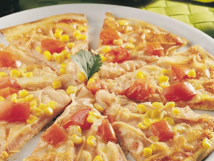 - .5 gr tozşekerDomates sos için: 5 domates1 soğan2 diş sarımsak3 çorba kaşığı zeytinyağı60 gr domates salçasıÜzeri için: 100 gr mozzarella peyniri100 gr hindi füme2 domates1 çay bardağı konserve tane mısır