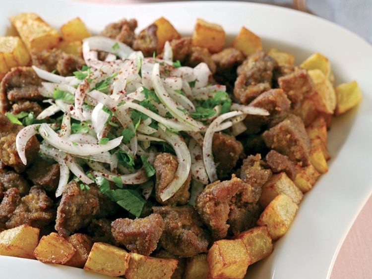 - Servis tabağına önce patatesleri, üzerine ciğerleri ve en üste soğanı yerleştirip servis yapın..