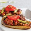 - Biftek, küp doğranmış soğan, küp doğranmış domates, tuz, karabiber, kimyon, pul biber, sirke ve şekeri fırın kabına alıp harmanlayın..