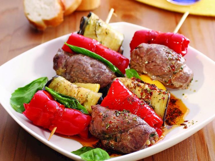 - Izgarada pişirilmiş biber ve patlıcan dilimlerini de rulo şeklinde sararak yan yana dizin..