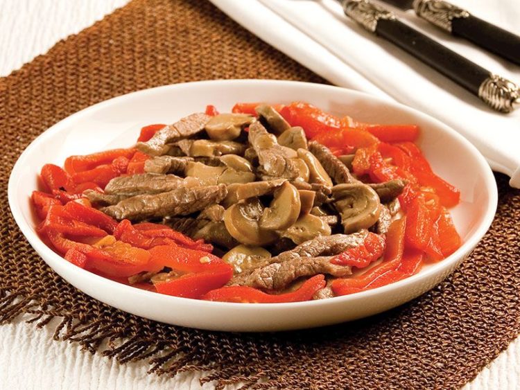 - Kremalı mantarlı stragonofu közlenmiş biberlerle birlikte sıcak servis yapın..
