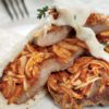 - Ayıkladığınız sarımsakları ve halka dilimlediğiniz domatesleri etlerin üzerine yayın..