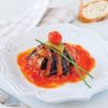 - Domates püresine 2 su bardağı sıcak su ekleyip karıştırın ve fırın kabının kenarından dökün..