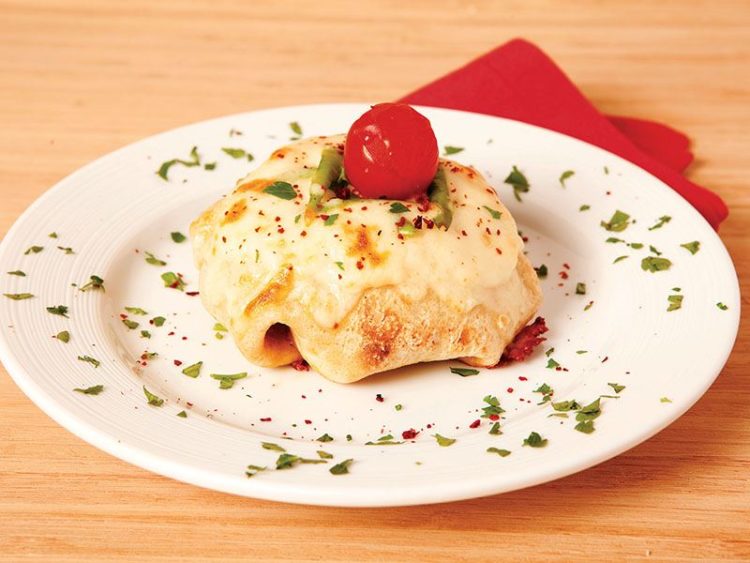 - Rendelenmiş kaşar peynirini serpiştirin..