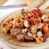 17. Domatesleri ve kalan sarımsakları da ilave ettikten sonra 2 yemek kaşığı tereyağını güvecin üzerine aktarın..