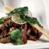 - Pişen kuzu etlerini servis tabağına alın..