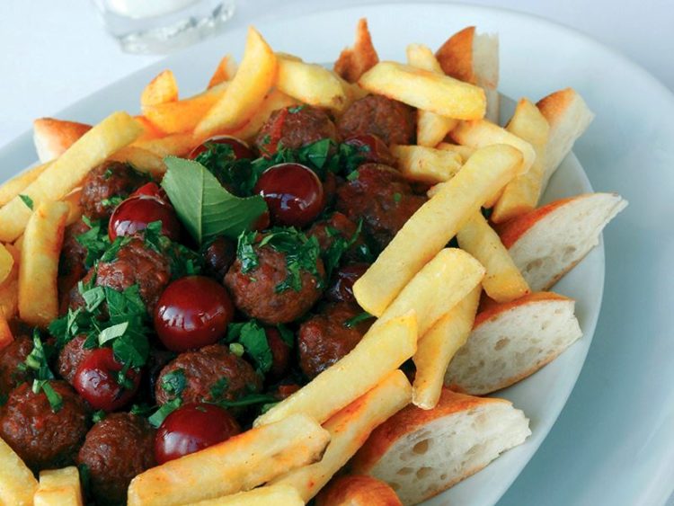 - Köfteler iyice piştikten sonra vişnelerin diğer yarısını etin üzerine aktarın..