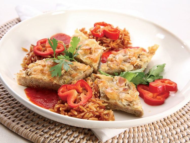 9. Dilimleyip isteğe göre arpa şehriye pilavı,domatesli sos ve dilimlenmiş salçalık biberler servis yapın..