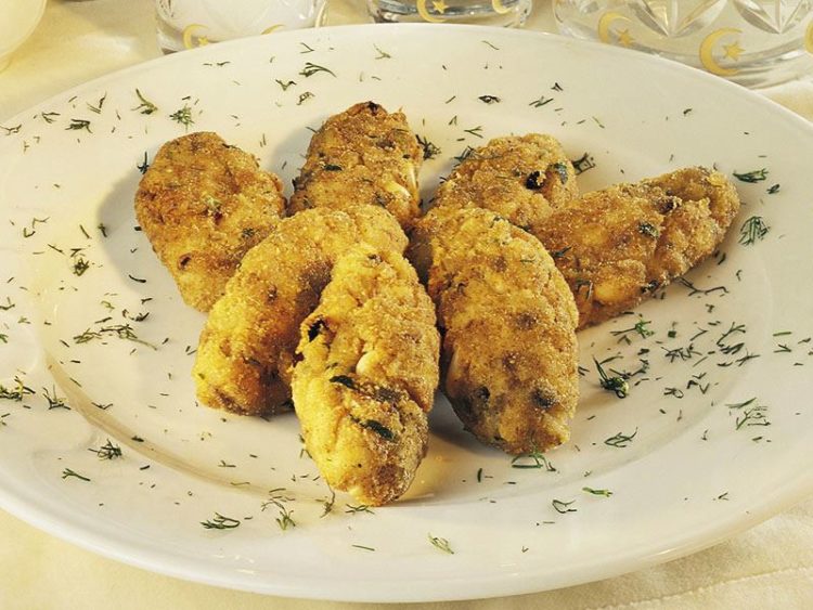 - 1 palamut3 soğan2 orta boy patatesYarım demet maydanoz1 kahve fincanı dolmalık fıstık1 kahve fincanı kuşüzümü2 yumurta1 çorba kaşığı yenibahar1 çorba kaşığı unKızartma için sıvıyağGaleta unuTuz