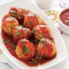 - Köfte hamurlarının sığacağı şekilde ısıya dayanıklı küçük kek kalıplarının içine yerleştirin..