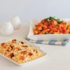 - Sivri biberleri ikiye bölüp patateslerin üzerlerine yerleştirin..