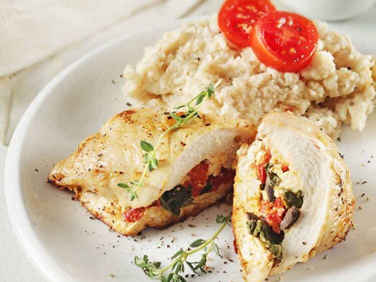 - Tavuk etlerini enine cep şeklinde kesin ve peynir karışımını içlerine doldurun..