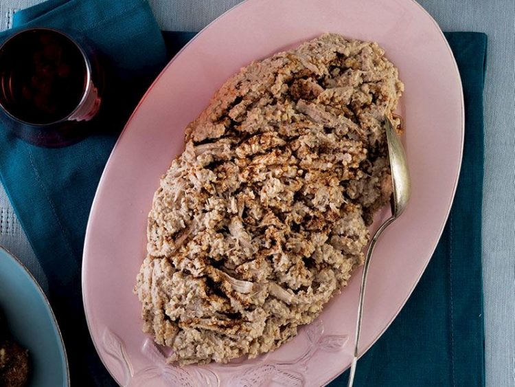 - Tavuğu haşladığınız sudan azar azar ekleyerek yumuşatın ve cevizli karışıma ekleyin..