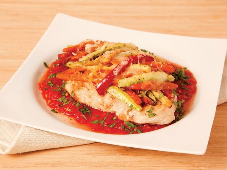 - Sebzeleri tavuk etlerinin üzerine paylaştırın..