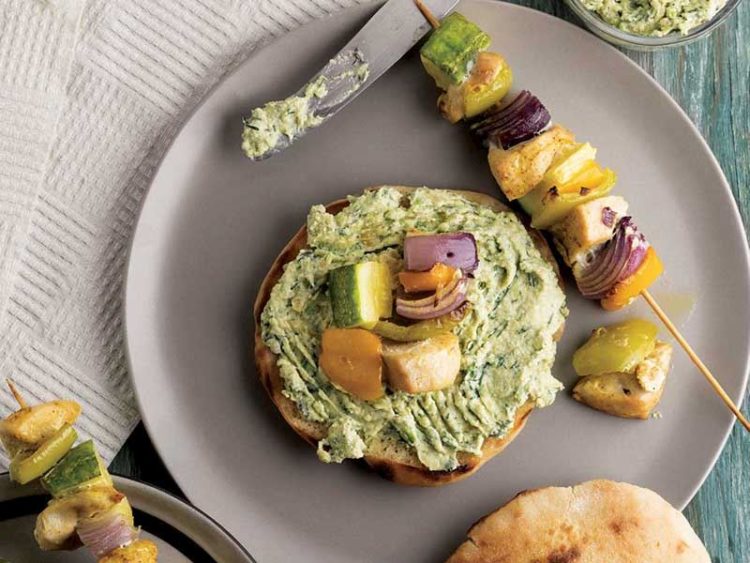 - Üzerine avokado püresini yayın, ortasına da tavuk şişleri yerleştirip servis yapın..