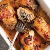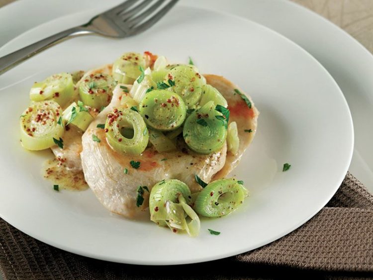 - Servis tabağına aldığınız tavuk göğüs etlerinin üzerine pırasalı sostan ekleyip taze çekilmiş karabiber ekin ve servis yapın..