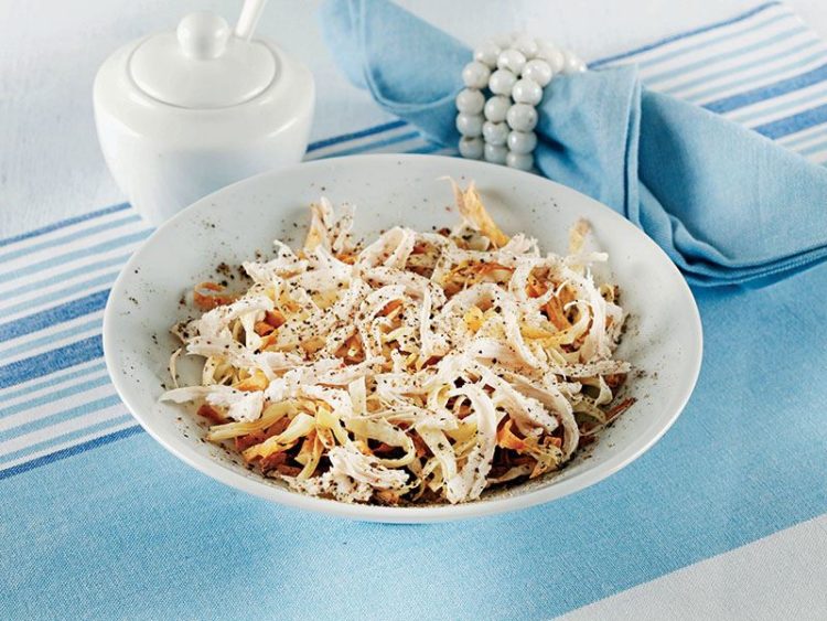 - Haşlanmış tavuğu iyice didikleyin..