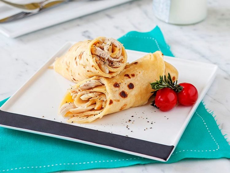 9. Hamurların üzerine tereyağı sürüp tavuk etini paylaştırın..