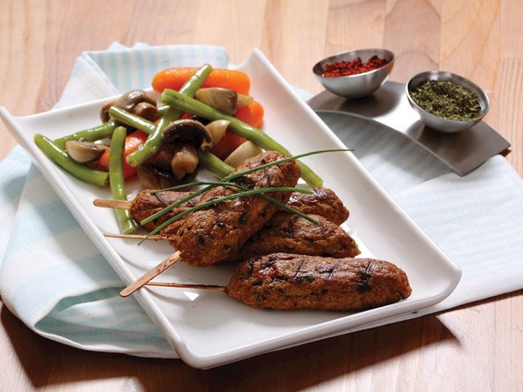- Kıymadan parçalar kopartıp çöp şişlere geçirin ve yassı köfteler yapın..