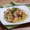- İnce doğranmış biber ve tavuk etlerini ekleyip orta ateşte soteleyin..