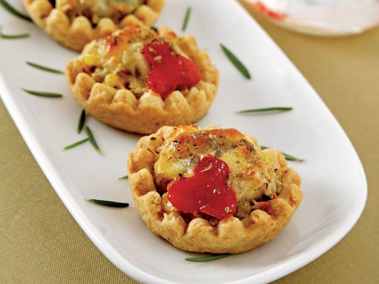 - Kırmızı biberden kalıpla çiçek çıkartıp payların üzerine yerleştirin..