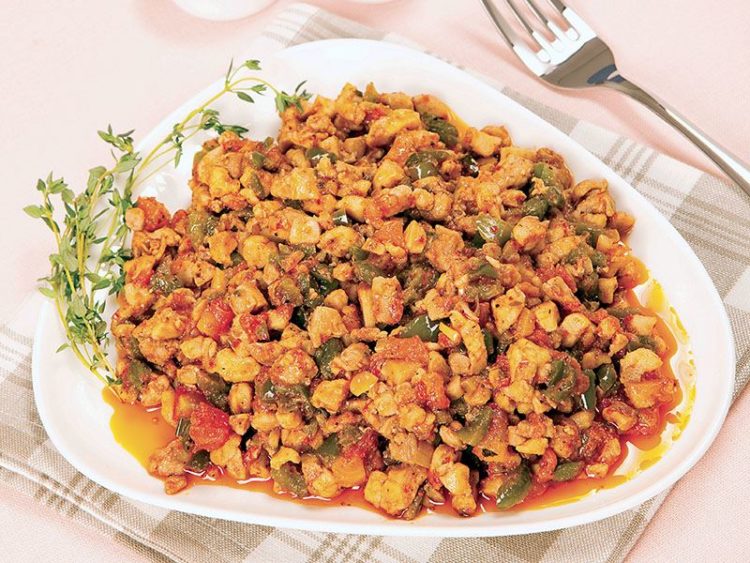 2. Tavuk etlerini minik kuşbaşı şeklinde doğrayın..