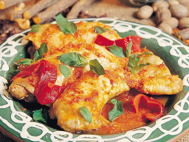 Közlenmiş biberleri soyup çekirdeklerini temizleyin.. - İnce şeritler halinde doğrayıp tavuğa ekleyin..
