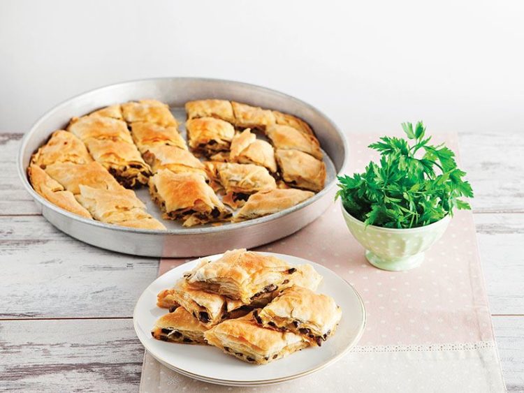 - Böreği baklava dilimi şeklinde kesip üzerine ayçiçek yağı sürün..
